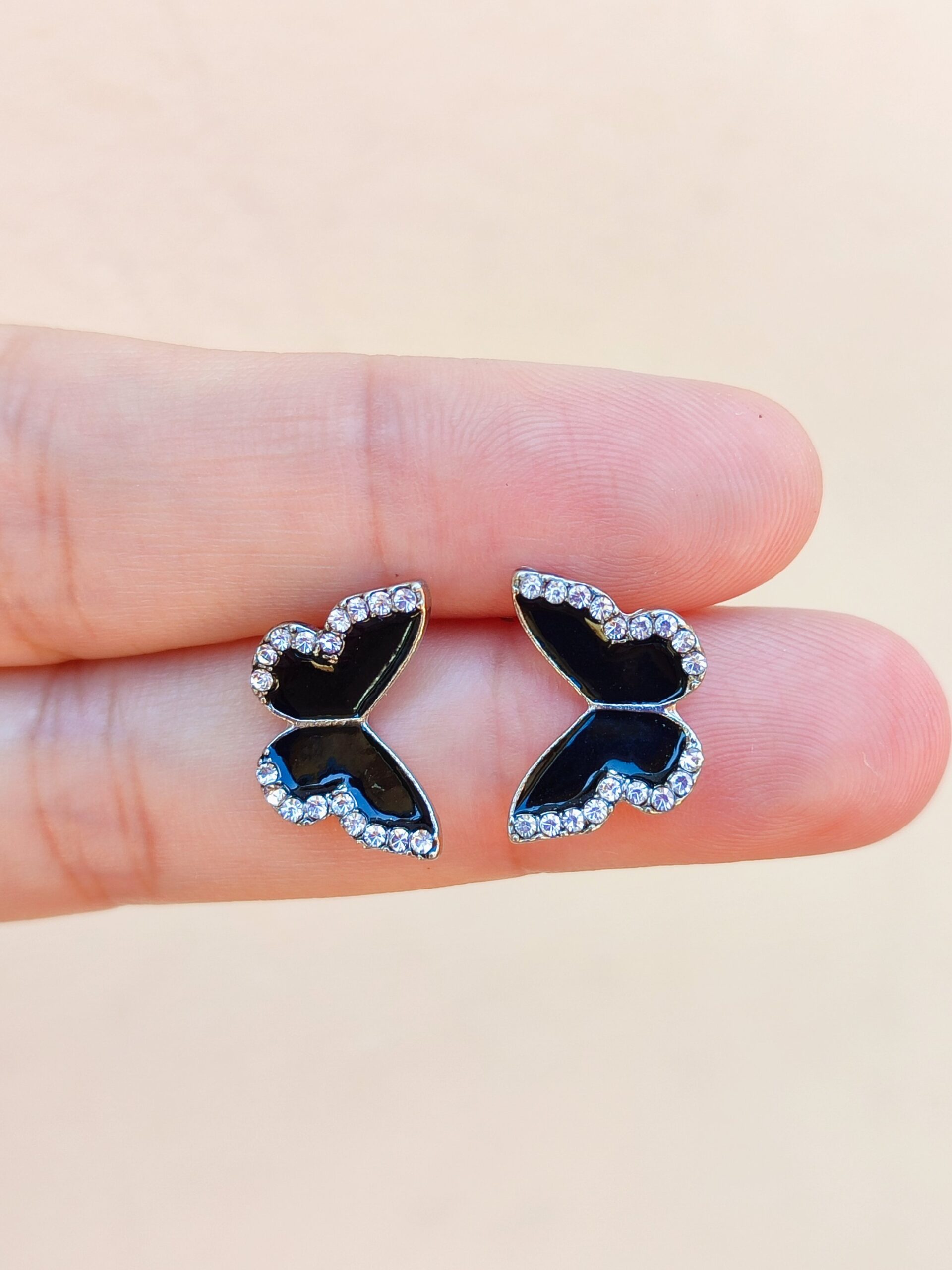 Aros mariposa negra plateados cantidad