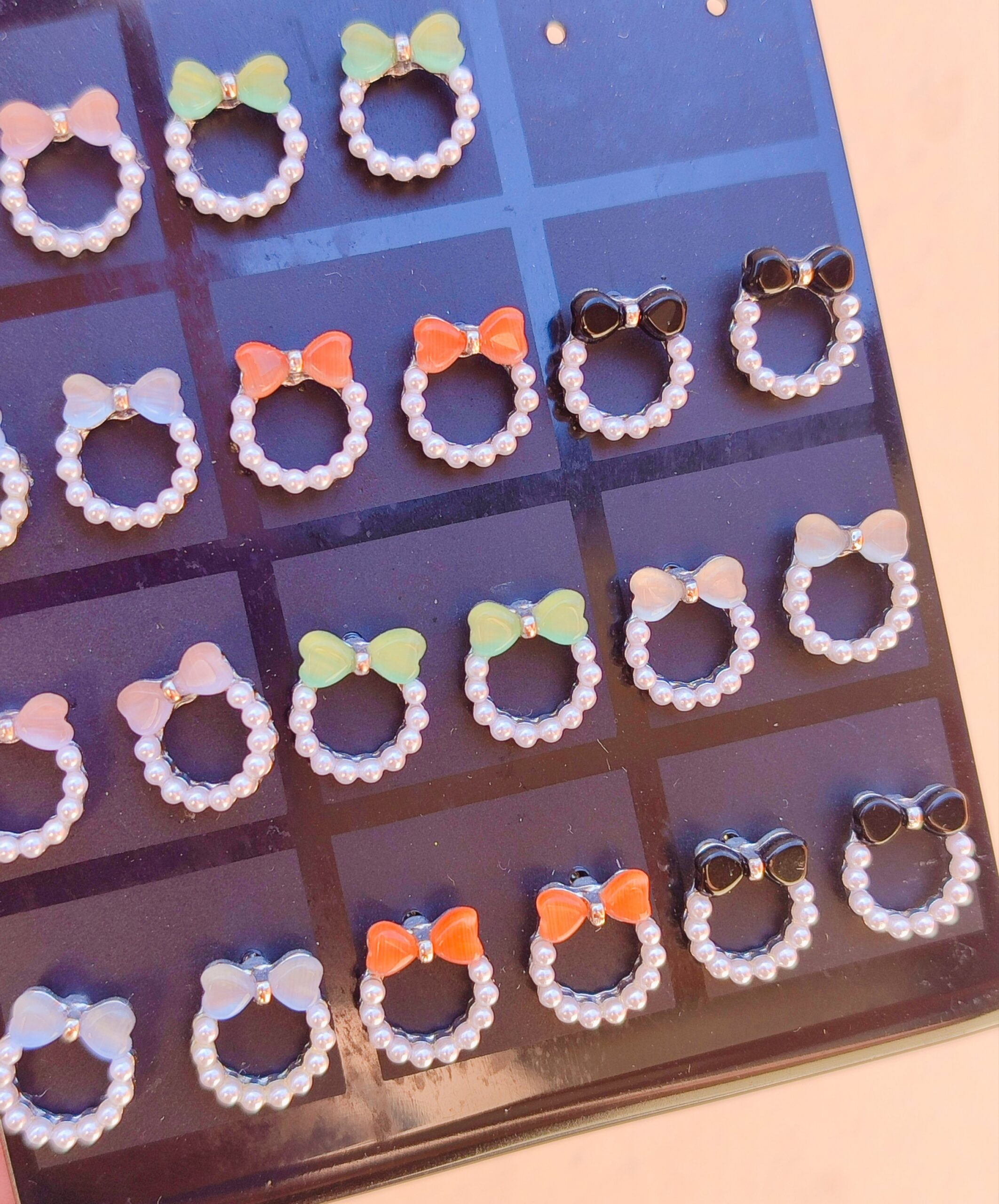 Aros moños con perlas plateados cantidad